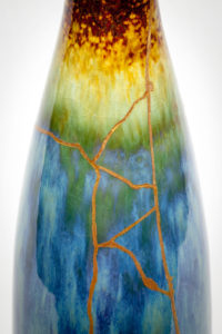 In the art of Kintsugi when a piece of pottery is broken, instead of picking up the pieces and throwing them away, a method of repair is used that emphasizes the break with gold. The Japanese use gold dusted epoxy to put the pottery back together. When the work is finished that pottery, which was once broken is now a masterpiece, more beautiful than it ever was before.